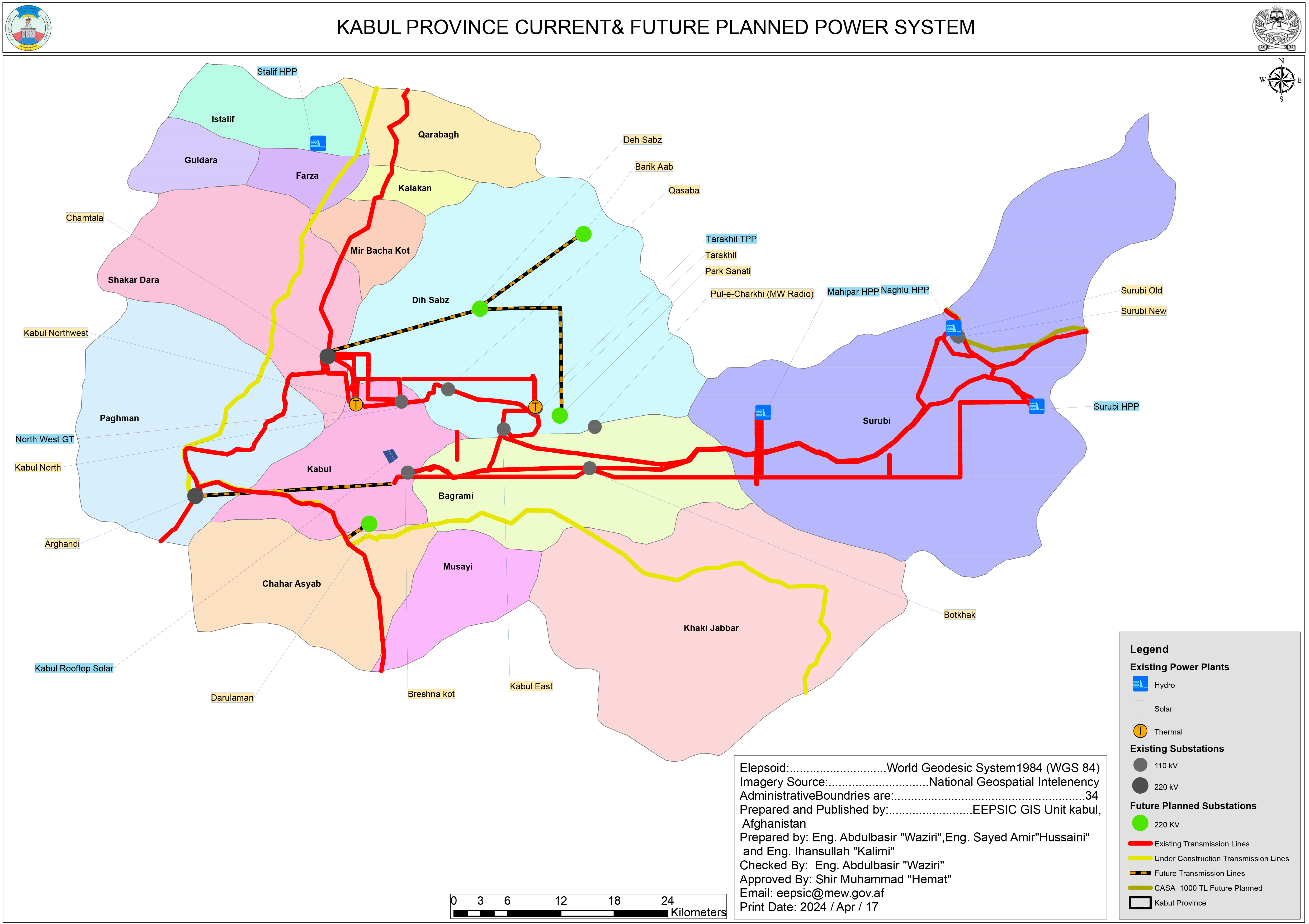 د کابل ولایت اوسنی او راتلونکی پلان شوی بریښنا سیسټم 1403